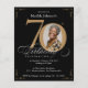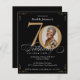 Black Gold Budget Photo 70th Birthday Invitation. An elegantly designed special birthday celebration invitation, featuring a custom photo of birthday person and script calligraphy with vintage flourish elements. Simple enough to fit a variety of themes and colours!