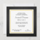 This dinner invitation features a classy business theme with a black background and light grey vertical pinstripes. A white box with a gold border features customisable text for you to add your professional event invitation.