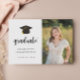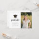 This graduation invitation features a simple black-and-white theme with a cap and tassel. Add a photo and customise text on the front and back to include all details for your graduation party.