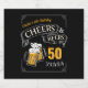 Stylish cheers and beers to 50 years typography design in black, gold and white, custom it with your own text, fun and unique, great for any age adult birthday party for men, or anniversary party for any occasion.