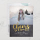 Black & Gold Cheers New Year Script Greeting Photo Holiday Postcard