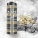 If you are wondering what colour combinations to pick for your Christmas decor and gift wrap supplies this year, I've created collections of coordinating patterns to make life just a bit easier. This thermal tumbler features a modern, cosy-looking plaid design, perfect for him, shown here in a striking black and gold colour palette. Add a message and name using the provided template. Search ID1009 to see other products and patterns in this colour scheme.