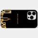 A black background, with a faux gold city skyline as decor. Template for your name or text. Golden letters