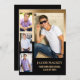 Modern black and gold 4-photo high school graduation photo announcement. Personalise with your graduate's favourite photos and add their name, school, and graduation year.