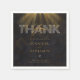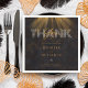 This stunning wedding napkin features bold, modern typography with a striking digital gold effect on the the word "you". The word "Thank" dazzles with a captivating digital diamond effect, adding an extra touch of luxury. Set against a sleek black background, these personalised napkins for wedding shower exudes elegance and sophistication, perfect for couples seeking a classy, contemporary style that stands out. Ideal for a glamourous, upscale celebration!