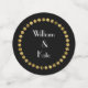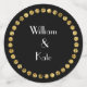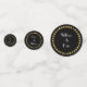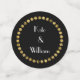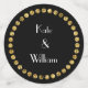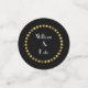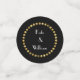 Black and gold design with the couples names, The reverse side has the names in reverse order, which is appropriate for both families.