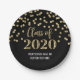 Customizable graduation party class of 2020 plates in black glamorous gold confetti pattern and elegant hand lettered style text.