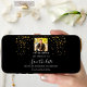 A Save the Date card for a 50th (or any age) birthday party. A black background. Decorated with golden confetti. The text: Save the Date is written with a large trendy hand lettered style script. Personalise and add a photo.
