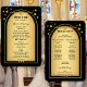 Classic gold and black wedding program hand fan with elegant sparkling gold confetti.