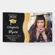Celebrate your favourite graduating senior with this black and gold tone "Congrats Graduate" photo design. The template features a wavy look on the left side with the word "Graduate" on the gold wavy background accompanied by a gold tone graduation cap to the left and your graduate's class year, name and school in white. Simply update with your grad's photo on the right and information on the left. Original illustration and design by Holiday Hearts Designs (rights reserved) with placeholder photo credit to Logan Isbell via Unsplash.