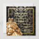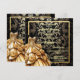 A beautiful, vibrant and luxurious damask background in shades of black and medium gold has an exquisite faux gold ruffled ballgown adorned with roses hanging from a manequin bodice. Light gold templates appear on the background and a golden border frame encases the templates. The back has the same design plus additional templates for extra information you may want your guests and family to know. If not required, delete the wording to leave them blank. This stylish, elegant and trendy design is ideal for any bridal shower; birthday or quinceanera celebration. Spoil the bride to be with this bespoke and timeless square invitation