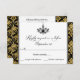 This elegant formal ballroom chandelier black and white with gold damask pattern rsvp card has a Baroque Victorian in FAUX gold damask border on it that matches the 50th wedding anniversary invitation shown below. All the text is customisable, and so are the paper choices. ****PLEASE NOTE that the metallic gold paper is a very dark brassy gold and it will alter the colours of the design severely, so I do NOT suggest using that paper. It is shown here on basic paper, but it would sparkle extra nicely on metallic ice paper, which has a subtle opalescent sheen to it. The felt paper is a nice thick, textured paper that would also give luxurious results. Linen will cool the design down and is a light-weight paper with thin lines running across it. Delicate paper is VERY thin and semi-transparent like vellum, so I don't suggest ordering that or the grooved paper. ALSO, if you change fonts or font sizes, your text may not fit properly any more. Zazzle will not edit anything for typos, alignment, or anything else, and I will not see your invitation. Everything will print as it appears on your monitor. If you need help with the invitation, please contact me BEFORE you order it. This invitation is designed to fit the 5x7 size card. If you change to another size, the design will no longer fit properly, so if you want a different size, please contact me so I can re-design it for you. If you require any other matching items in this design, please email your request to niteowlstudio@gmail.com.