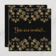 Black gold damask royal Wedding Invitations. A classy black gold wedding invitation with golden damask bordes on black background. Personalise it with your text. You can use it as a birthday invitation too for 30, 40, 50, 60, 70, 80, 90 and why not 90 or 100 or as an anniversary invitation.