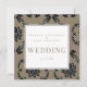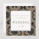 Black and Gold Damask Wedding Invitation. Square. Gold text.