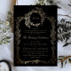 Black Gold Ebony Botanical Monogram Wreath Wedding Invitation