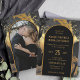 Unique sophisticated abstract photo wedding invitation in faux gold metallic glitter and black with modern contemporary fully editable typography script over an arch shape. ++++++++++ The invitation is suitable for all seasons trendy formal glam chic weddings. ++++++++++++++ Easy to personalise with your details and photo on the backside.