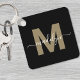 This sleek square keychain brings a modern and personalised touch to your everyday essentials. The design features a faux gold monogram initial (flat colour only—no shimmer or shine) centred on a solid black background, with your name in elegant white script layered across it. The same clean and stylish monogram design appears on both sides for a polished and minimal black and white look.