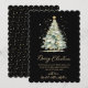Elegant Modern Black and Gold Calligraphy Script Merry Christmas Tree Non Photo Christmas Cards. This festive simple minimalist Christmas Holiday cards features a watercolor christmas tree with decoration gold balls and confetti and a „Merry Christmas” greeting text which is written in a nice hand lettered font type in gold on black background. On the reverse side golden glitter snow or sparkling gold confetti on black background. This festive Custom Christmas Cards are a great way to remind loved ones that you're thinking of them this Winter Holiday Season.