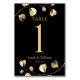 A black and gold eucalyptus sprig wedding table number card that can be customised with any table number. The graphics appear on both sides of this card.