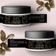 Enhance your product packaging design with a faux gold cosmetic jar label design (W 7.25" x H 1"), featuring a modern floral design in black and gold with space for the product scent, ingredients, benefits and your brand name. This waterproof product sticker can be used for standard 4 OZ / 120ml cosmetic jars, whipped body butter, body sugar scrub, whipped soap, cleansers and more. Please double check your container size to ensure a good fit. Create custom bath body product labels with this fully editable skincare ingredients sticker.
