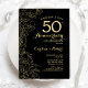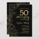 Black Gold Floral 50th Wedding Anniversary Party Invitation. Minimalist modern design featuring botanical outline drawings accents and typography script font. Elegant invite card perfect for a stylish celebration. Can be customized to any year of marriage. Printed Zazzle invitations or instant download digital printable template.