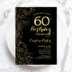 Black Gold Floral 60th Birthday Party Invitation. Modern design featuring botanical outline drawings accents, faux gold foil and typography script font. Trendy invite card perfect for a stylish female bday celebration. Can be customized to any age. Printed Zazzle invitations or instant download digital printable template.