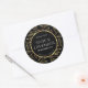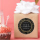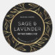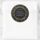 Elegant round product label template featuring botanical background in black and gold with modern fonts. Create professional packaging design for your candles, wax melts, body butter, cosmetics or any other type of product using this modern faux gold floral sticker design - great to use for jar lids or on the front of your products. This editable circle label allows you to customise all text, background colour and layout to suit your brand.