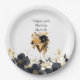 Black Gold Floral Cocktail Drinks 40th Birthday Paper Plate