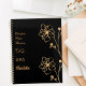 A black coloured background decorated with golden flowers and a faux gold infinity loop. The motivational quote: Drem. Plan. Bloom. Personalise and add your name and year.