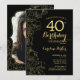 Black Gold Floral Photo 40th Birthday Party Invitation