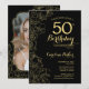 Black Gold Floral Photo 50th Birthday Party Invitation