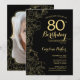Black Gold Floral Photo 80th Birthday Party Invitation