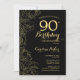 Black Gold Floral Photo 90th Birthday Party Invitation