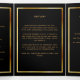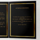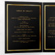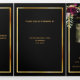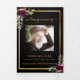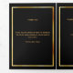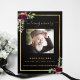 An elegant tri-fold program. A black background, a faux gold frame, burgundy florals and space for your photo. Personalise and add name, dates and your text.