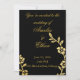 Bring timeless elegance to your big day with this black and gold floral wedding invitation. Featuring delicate gold botanical line art florals on a deep black background, this design blends romance and sophistication. Personalise easily with your names, wedding date, venue, and special details using Zazzle’s editor. Perfect for romantic evenings, formal weddings, rustic luxe themes, or chic garden celebrations. Pair with matching RSVP, Save the Date, and Thank You cards to complete your wedding stationery set.