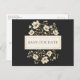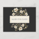 This elegant wedding save the date postcard features beautiful watercolor champagne and gold flowers with faux gold foil leaves and border on a black background. The back is cream and the text is dark grey. This is part of the Champagne and Gold Floral Collection.