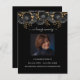 An elegant 2-page program. A classic black background, black and golden florals and space for a photo. Personalise and add name, dates and your text.