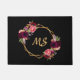 A chic black background. Decorated with a faux gold geometric frame and burgundy, pink and rose gold coloured flowers, florals. Personalise and add your monogram letters, initials. Golden coloured letters.