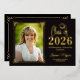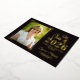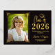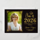 This fully customisable Class of 2025 graduation announcement invitation has real gold foil on all elements on the front side. The background colour is black and there is a photo template on the left side that has an ornate gold foil scrolled frame around it. The back side is also black coloured with a simulated gold scroll border surrounding the customisable wording that allows room to include the party details and RSVP information. Email niteowlstudio@gmail.com if you want a different colour other than black on the front or back. You can change the colour of the black background on the back side to whatever colour you want using the "edit using design tool" mode and changing the background colour. The scrolled frame will remain the simulated gold look on the back.