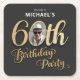 Black Gold Foil Custom Photo 60th Birthday Square Paper Coaster