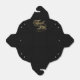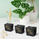 A wedding favour box featuring a black background with the words "Thank You" in faux gold foil and space for the names and wedding date of the bride and groom.