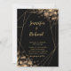 Our stunning black wedding invitation featuring accents of champagne-hued bokeh lights is sure to wow your guests. The geometric gold frame brings elegance to this modern invite shimmering with bokeh sparkles.