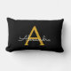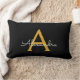 Black Gold Girly Script Monogram Name Modern Lumbar Cushion