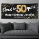 Celebrate a milestone birthday in style with our elegant fiftieth birthday party banner. Boasting a customisable stylish black background, faux gold sparkle, and modern 50th birthday celebration text, this banner is the perfect way to make a statement. Plus, our fifty gold helium balloons add an extra touch of glamour. Easily personalise this banner to mark the special day with elegance and sophistication.
