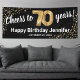 Celebrate a milestone birthday in style with our elegant seventieth birthday party banner. Boasting a customisable stylish black background, faux gold sparkle, and modern 70th birthday celebration text, this banner is the perfect way to make a statement. Plus, our seventy gold helium balloons add an extra touch of glamour. Easily personalise this banner to mark the special day with elegance and sophistication.