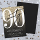 Modern Gradient Glitter 90th Birthday Party Invitation. Celebrate ninety in style with this bold and chic design. The top half features a large white “90” with a sassy handwritten black script “Ninety” layered over it, standing out against a faux gold glitter background that fades into a sleek black gradient. The bottom portion is solid black with party details in a clean sans serif white font for a modern and striking look. Colours for the fonts and background can be customised to fit your theme.