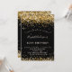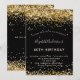 A modern, stylish and glamourous invitation for a 40th (or any age) birthday party. A black background decorated with faux gold glitter dust. The name is written with a modern hand lettered style script. Personalise and add your party details.