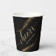 Add a personalised touch to a birthday or any other party with these personalised paper cups. Design features modern script calligraphy metallic text "Cheers" and gold coloured confetti on a black background.