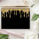 Black and gold glitter drip wedding invitation envelope. Personalise it with your event details.