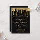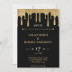 Black and gold glitter drip wedding invitation. Personalise it with your event details.